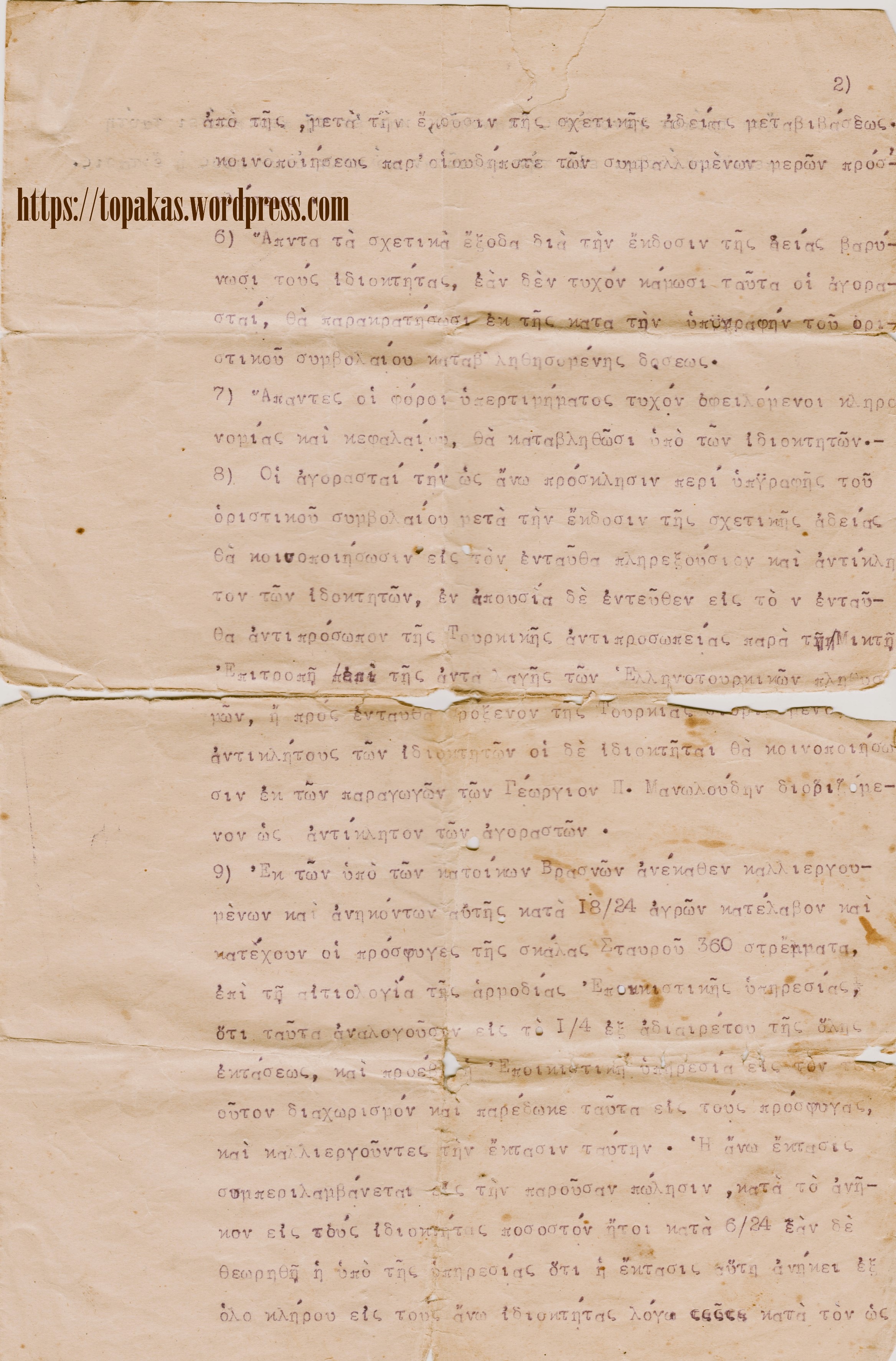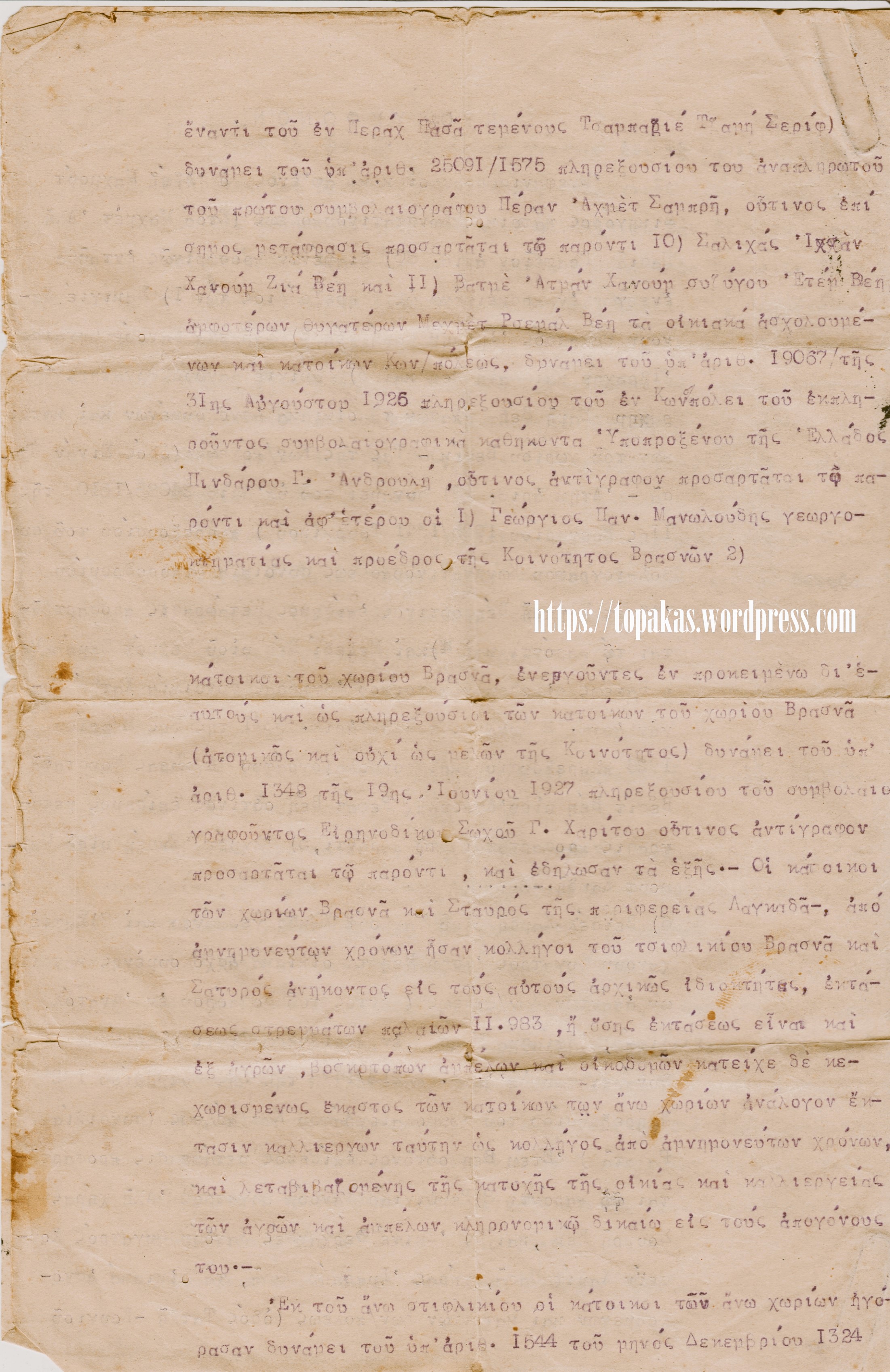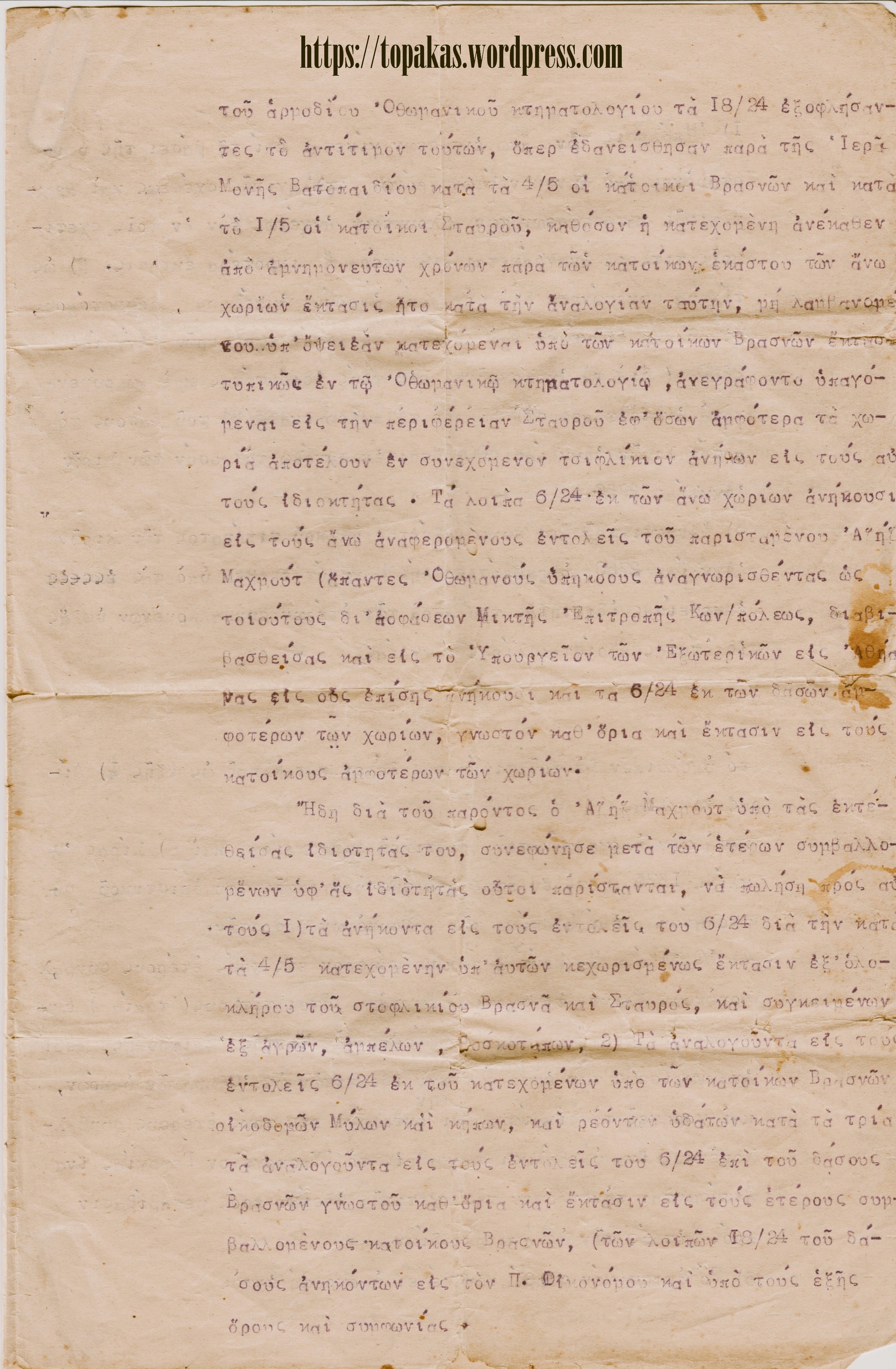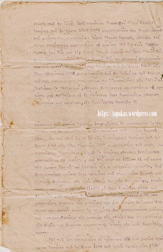 {1925 ΠΡΟΣΥΜΦΩΝΟΝ: Οι κάτοικοι των χωρίων Βρασνά και Σταυρός της περιφερείας Λαγκαδά, από αμνημονεύτων χρόνων ήσαν κολλήγοι του τσιφλικίου Βρασνά και Σταυρός ανήκοντος εις τους αυτούς αρχικώς ιδιοκτήτες εκτάσεως στρεμμάτων παλαιών 11.983 ή όσης εκτάσεως είναι… (18/24, 6/24 κλπ.)}