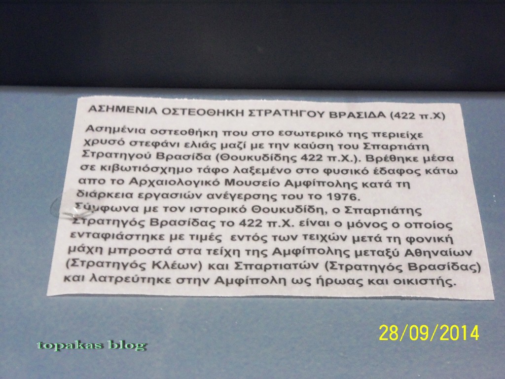 Μουσείο Αμφίπολης, η οστεοθήκη και ο τάφος του στρατηγού Βρασίδα (4/11/2015)
