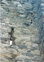 Διαστάσεις: εσωτερικές 7 επι 7.30 μ. αντηρίδες γωνιακές και κεντρικές 0.80 επι 1.20 μ. πάχος τοίχου στη βάση 2.40 μ. αλλα μειώνεται στο ύψος.