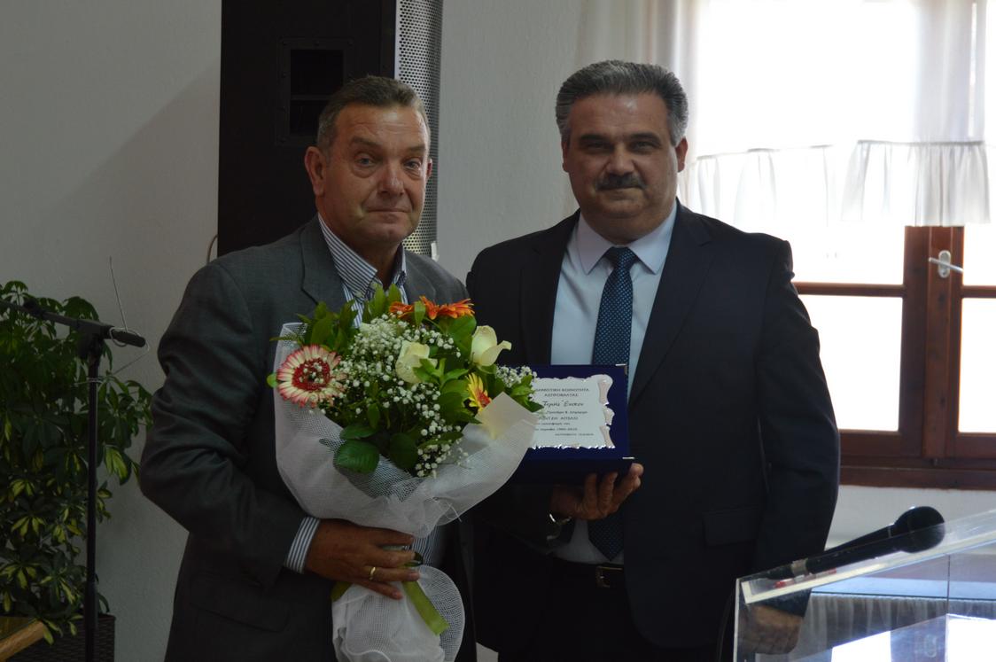 Στα αριστερά ο Άγγελος Φραντζής (πρόεδρος κοινότητας Ασπροβάλτας 1995-1999 και δήμαρχος Αγίου Γεωργίου 1999-2010) κια δεξιά ο δήμαρχός Βόλβης Διαμαντής Λιάμας