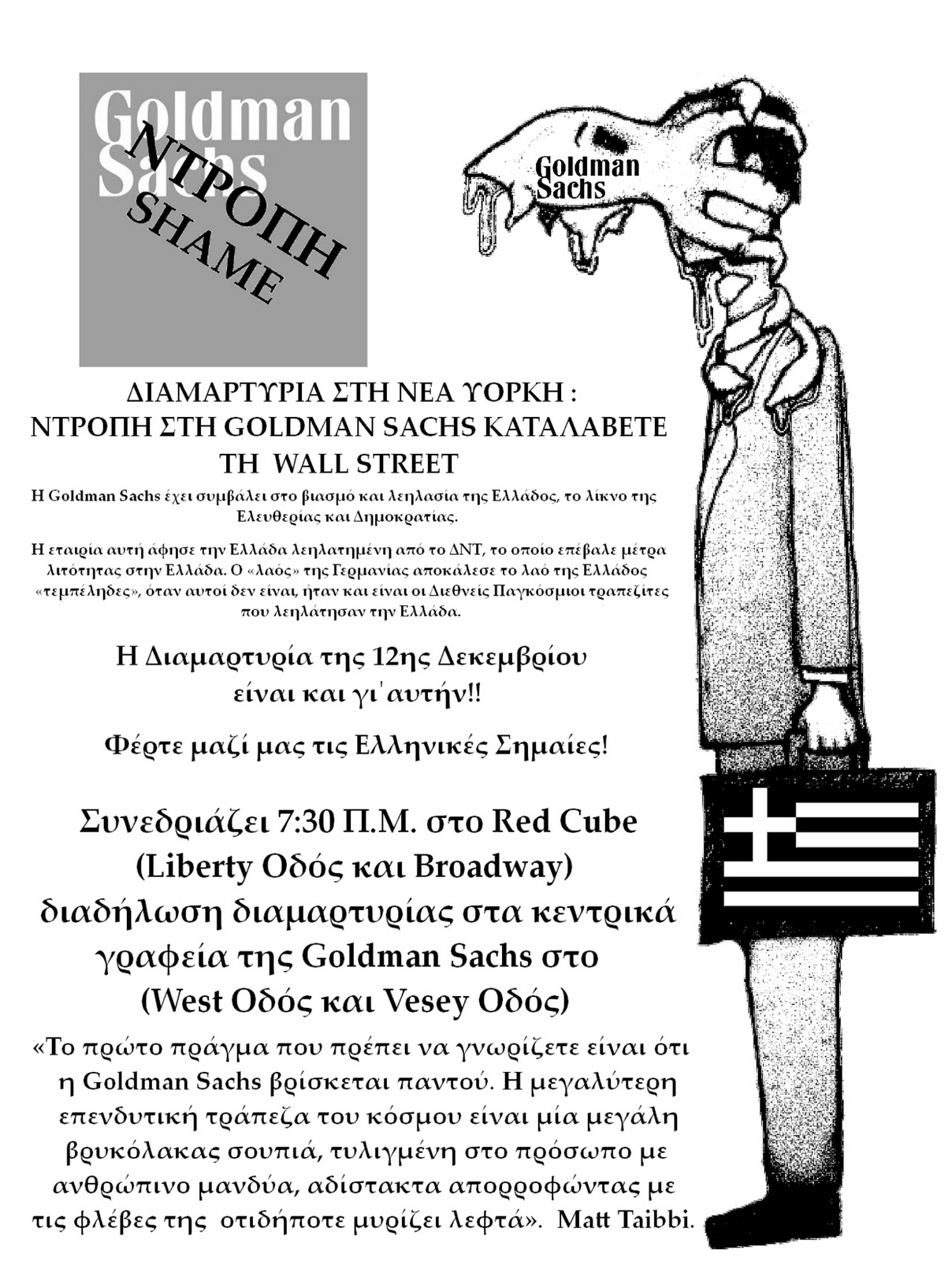 Στις 12 Δεκέμβρη, έξω από τα γραφεία του τέως (;) εργοδότη του κ. ΠαπαΔήμιου, της Goldman Sachs!