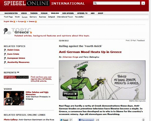 Το Spiegel, το οποίο έγινε γνωστό για τα ακραία, προκλητικά και προσβλητικά δημοσιεύματά του για την χώρα μας, αντιμετωπίζει τα αντι-γερμανικά συναισθήματα στην Ελλάδα ως κάτι το στερεότυπο, ενώ δεν διστάζει…