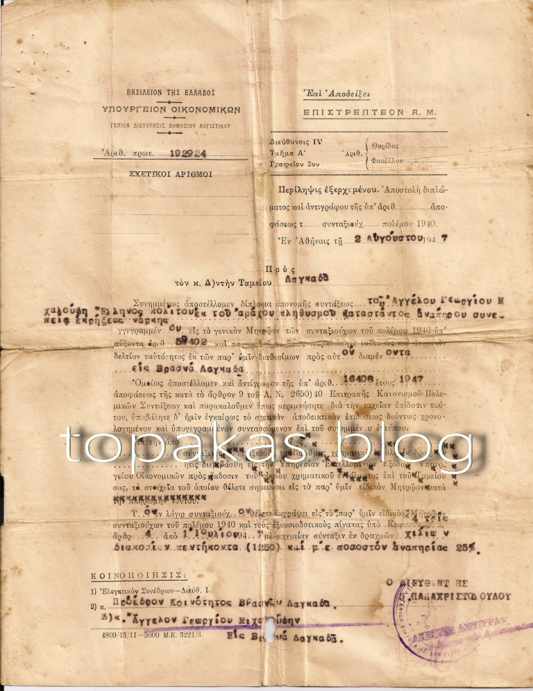 …καταστάντα ανάπηρο συνεπεία τραυματισμού του την 10/12/1944 εξ εκρήξεως νάρκης…