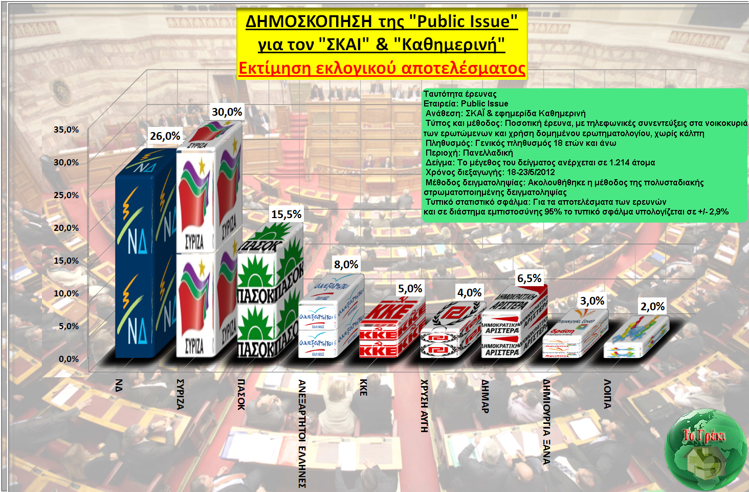 Δημοσκόπηση Public Issue: Πρωτιά για τον ΣΥΡΙΖΑ με 30%, ΝΔ 26%, ΠΑΣΟΚ 15,5%