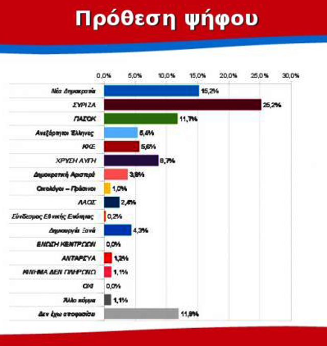 Αναλυτικά στην πρόθεση ψήφου τα ποσοστά των κομμάτων έχουν ως εξής:…