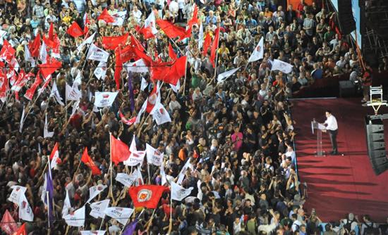 Σφοδρή επίθεση σε ΝΔ και ΠΑΣΟΚ εξαπέλυσε ο Πρόεδρος του ΣΥΡΙΖΑ μιλώντας στην κεντρική προεκλογική συγκέντρωση του κόμματος του.