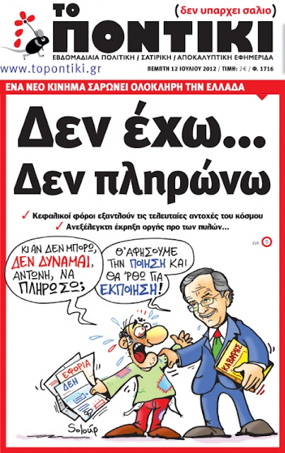 Είναι κάποιοι εκ πεποιθήσεως μπαταχτσήδες, επαγγελματίες της φοροδιαφυγής, με τα «σέα τους, τα μέα τους» και τα λεφτά τους στην Ελβετία. Αυτοί δεν «γουστάρουν» και δεν πληρώνουν. Αυτούς, που ζουν σε βάρος των υπολοίπων, οι αρχές δεν τους αγγίζουν καθώς κινούνται ανάμεσά τους. Δεν μιλάμε όμως γι’ αυτούς που δεν γουστάρουν να πληρώσουν. Μιλάμε γι’ αυτούς που δεν τους έχει απομείνει τίποτε να δώσουν. Το υπόμνημαπρος το υπουργείο Οικονομικών και τη ΔΟΥ Ιεράπετρας που μας απέστειλε φίλος αναγνώστης και δημοσιεύεται στο τέλος του κειμένου, περιγράφει γλαφυρά την άγρια κατάσταση που βιώνουν εκατοντάδες χιλιάδες άνθρωποι, ένα τεράστιο πια κομμάτι της ελληνικής κοινωνίας. Περιγράφει ταυτόχρονα, εκτός από την απόγνωση, και τα όρια της φορομπηχτικής πολιτικής. Με άλλα λόγια, περιγράφει την αποτυχία του μοντέλου της περιοριστικής πολιτικής για την κάλυψη των ελλειμμάτων. Οι εγχώριοι αχυράνθρωποι και οι ξένοι επόπτες τους, οι επιτελείς της καταστροφής, μάλλον δεν έχουν συνειδητοποιήσει πως «ουκ αν λάβοις παρά του μη έχοντος». Αυτοί οι… τύποι, συνηθισμένοι να αντιλαμβάνονται τους ανθρώπους ως αριθμούς και διαβιούντες μακριά από την αληθινή ζωή των «απλών ανθρώπων», αδυνατούν ακόμη να αντιληφθούν ότι…