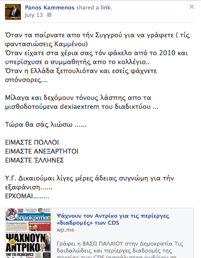 Ο Π. Καμμένος για τα μισθοδοτούμενα dexiaextrem του διαδικτύου…