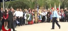 Μετά από αυτό ήρθε η ώρα να καταθέσει στεφάνι στο Ηρώο, ο διοικητής του αστυνομικού τμήματος Λουτρακίου Χαράλαμπος Τετράδης ο οποίος αρχικά αρνήθηκε και στη συνέχεια πήρε το στεφάνι και το πέταξε από 10 μέτρα μακρυά φωνάζοντας επανειλημμένα «ντροπή σας». …