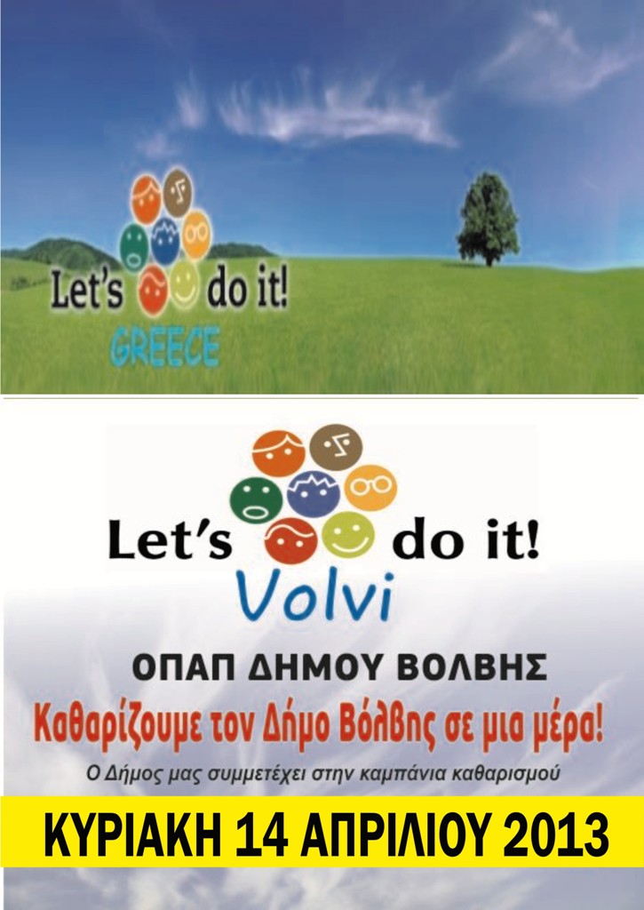 Δεκάδες σύλλογοι και φορείς μαζί με εθελοντές, υπό την οργανωτική ευθύνη του Οργανισμού Πολιτισμού, Αθλητισμού και Περιβάλλοντος (ΟΠΑΠ) του δήμου Βόλβης, συμμετέχουν μαζικά την Κυριακή 14 Απριλίου 2013 στη διεθνή εθελοντική καμπάνια για το περιβάλλον «Let’s Do It».