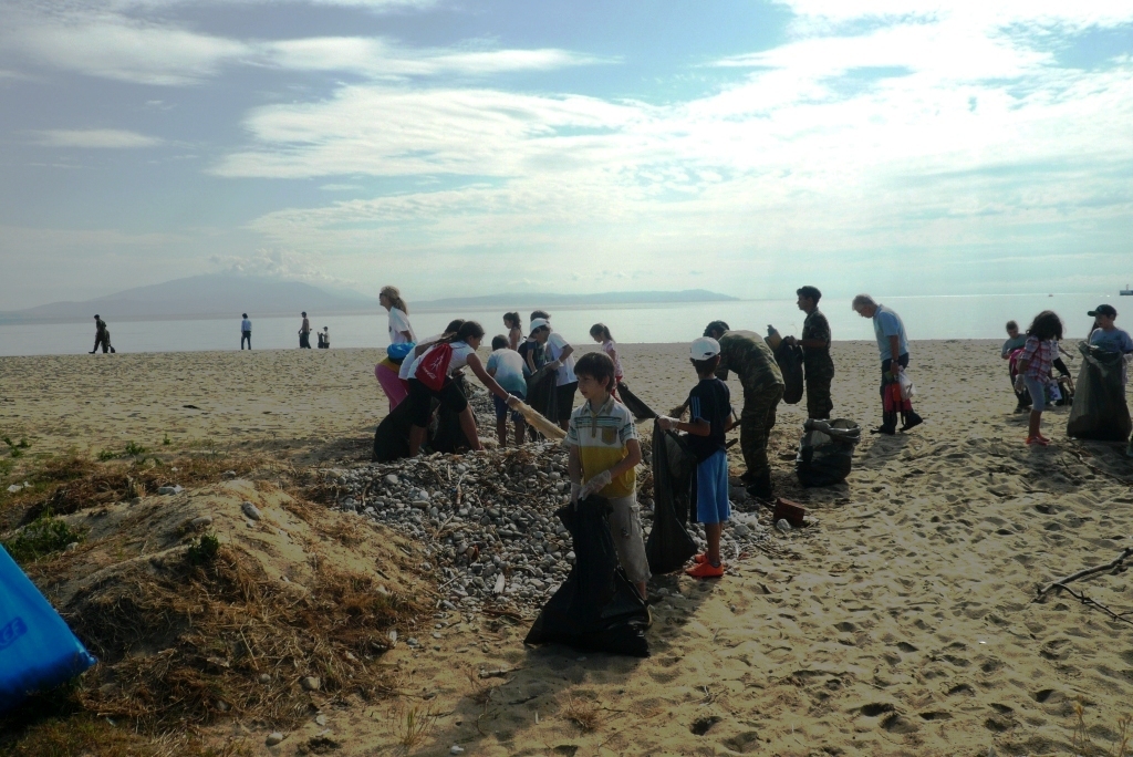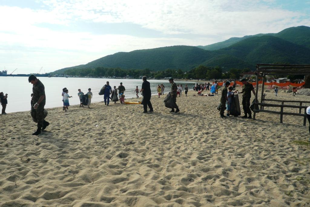 Μαθητές, στρατιώτες, πολίτες και δημοτικοί υπάλληλοι οργανωμένα καθάρισαν την άμμο και την περιοχή κοντά στην παραλία από τα σκουπίδια, αποδίδοντας την ακτή πεντακάθαρη στους λουόμενους του φετινού καλοκαιριού.
