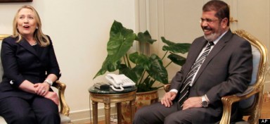 Αμέσως μετά την εκλογή του ο Μοχάμεντ Μόρσι (αναλαμβάνει τα καθήκοντα του στις 30 Ιούνη 2012) δέχεται την πρώτη επίσημη επίσκεψη αναγνώρισης και υποστήριξης στην Αίγυπτο, από την αμερικανίδα ΥΠΕΞ Χίλαρυ Κλίντον και επισφραγίζουν την…