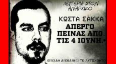 Κρίσιμη είναι η κατάσταση της υγείας του κρατούμενου Κώστα Σακκά, ο οποίος συμπλήρωσε ένα μήνα απεργία πείνας. Ο Κώστας Σακκάς κατηγορείται για συμμετοχή στην οργάνωση «Συνωμοσία των Πυρήνων της Φωτιάς» και είναι προφυλακισμένος ήδη για 30 μήνες χωρίς να έχει γίνει η δίκη του – έχοντας συμπληρώσει το ανώτατο νόμιμο όριο προφυλάκισης.