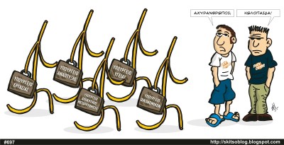 Αυτό το άρθρο δημοσιεύτηκε στο Ανάμια, Σκίτσα, Παραλαλίδις, Γελοιογραφίες, Σάτιρα, Πολιτική γελοιογραφία & σάτιρα. Αποθήκευσε τον μόνιμο σύνδεσμο.
