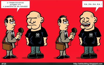 Αυτό το άρθρο δημοσιεύτηκε στο Ανάμια, Σκίτσα, Παραλαλίδις, Γελοιογραφίες, Σάτιρα, Πολιτική γελοιογραφία & σάτιρα. Αποθήκευσε τον μόνιμο σύνδεσμο.