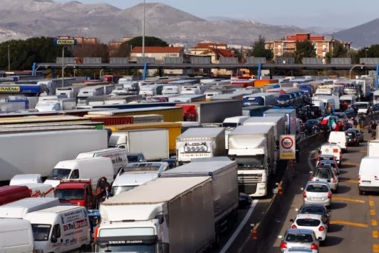 Σε εξέλιξη βρίσκεται η διαμαρτυρία οδηγών φορτηγών σε πολλές περιοχές της Ιταλίας. Μπλόκα έχουν στηθεί σε δρόμους της βορειοανατολικής Ιταλίας, ενώ την νύχτα απεργοί προσπάθησαν να εμποδίσουν την πρόσβαση στην κεντρική αγορά στην πόλη Τορίνο.