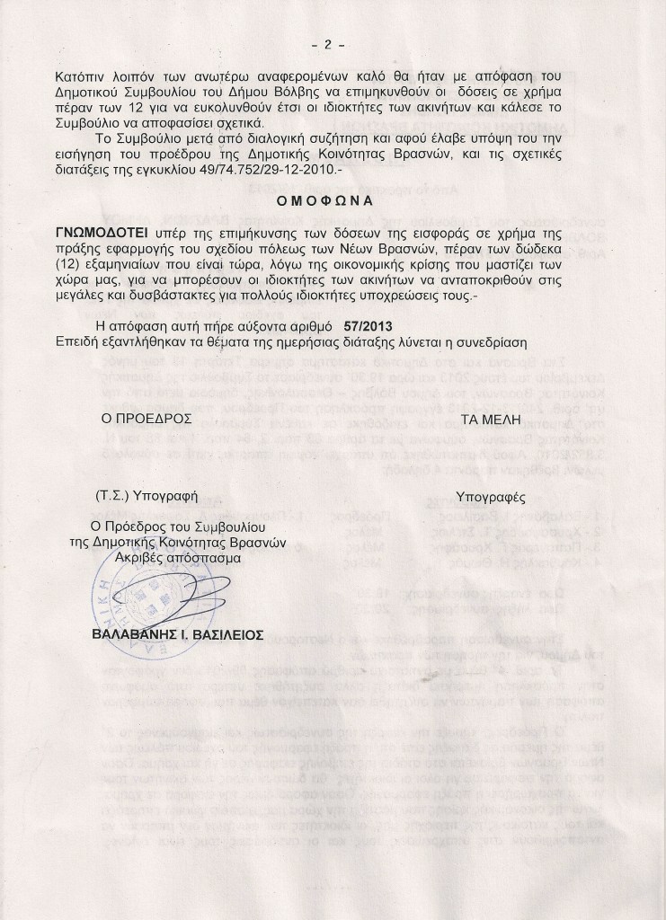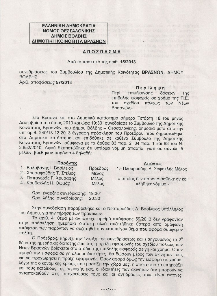Πράξη εφαρμογής σχεδίου Βρασνών, μια σημαντική απόφαση