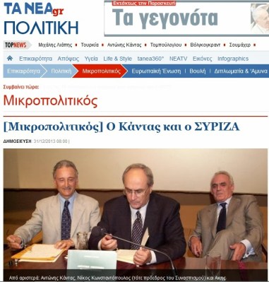 Όλοι είδαν την φωτογραφία του Κωνσταντόπουλου δίπλα στον Κάντα κατά την παρουσίαση του βιβλίου του το 2002. Η διαπλοκή την προέβαλλε αλλαλάζοντας, παρά το ότι ο Κωνσταντόπουλος ως πολιτικός θα μπορούσε να δικαιολογήσει θεσμικά την παρουσία του σε μία παρουσίαση βιβλίου. Όσο και αν θα έπρεπε να την είχε αποφύγει.