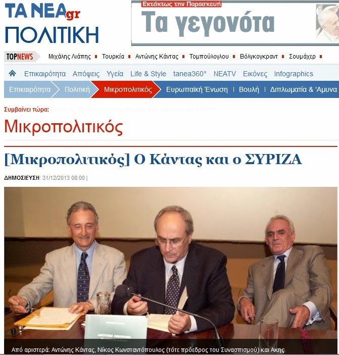 Όλοι είδαν την φωτογραφία του Κωνσταντόπουλου δίπλα στον Κάντα κατά την παρουσίαση του βιβλίου του το 2002. Η διαπλοκή την προέβαλλε αλλαλάζοντας, παρά το ότι ο Κωνσταντόπουλος ως πολιτικός θα μπορούσε να δικαιολογήσει θεσμικά την παρουσία του σε μία παρουσίαση βιβλίου. Όσο και αν θα έπρεπε να την είχε αποφύγει.