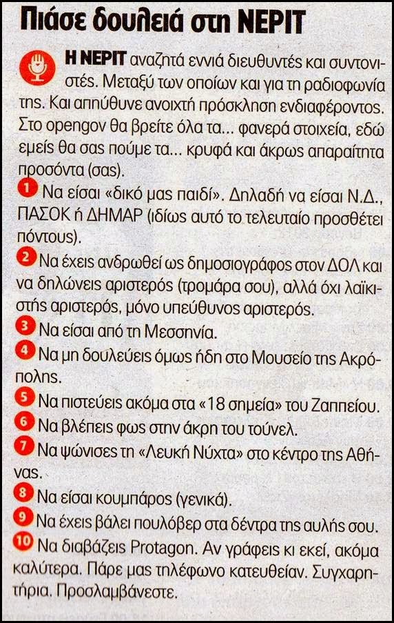 Η ΝΕΡΙΤ ακόμα .. στελεχώνεται. Ο Π. Καψής παράγει φορομπηχτικό έργο