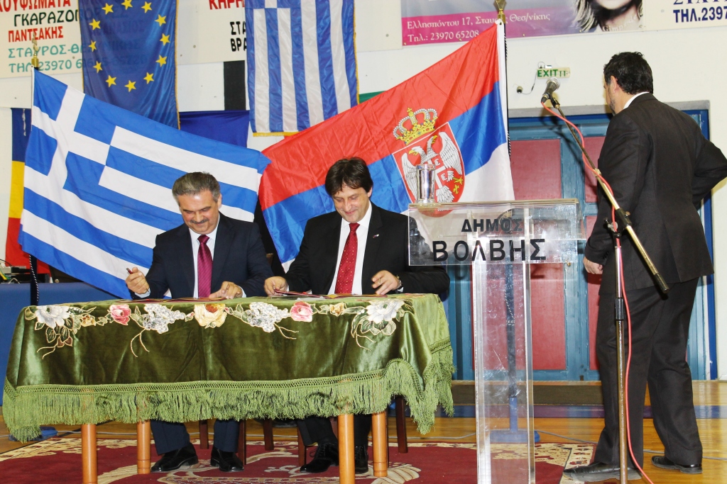 Σε μια λαμπρή τελετή στο Σταυρό οι δήμαρχοι Βόλβης Διαμαντής Λιάμας και Κρούσεβατς Bratislav Gašić επικύρωσαν την επίσημη συνεργασία τους