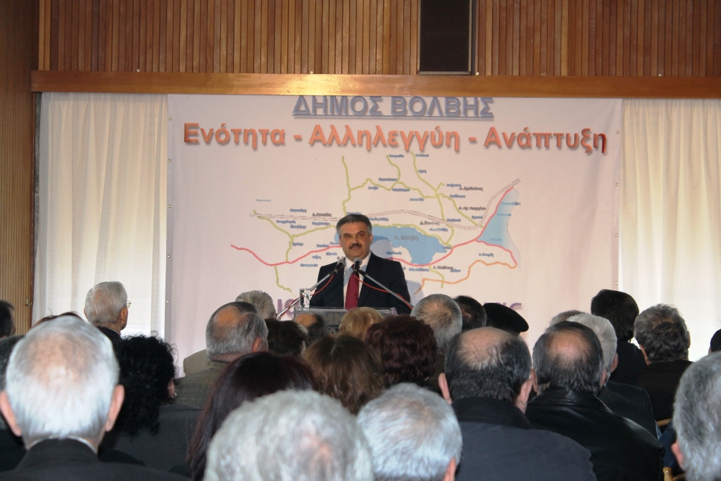 Αναφέρθηκε στο μεγάλο «αθέατο» έργο που πραγματοποιήθηκε τα τελευταία 3,5 χρόνια στο δήμο Βόλβης, που ήταν η διαμόρφωση ενός νέου δήμου σχεδόν από μηδενική βάση και κυρίως η προσπάθεια να μην βυθιστεί ο νέος δήμος λόγω των χρεών του παρελθόντος. Υπογράμμισε ότι ο τότε δήμαρχος Δημήτρης Γαλαμάτης και η δημοτική αρχή, παρέλαβαν χρέος 9 εκατ. ευρώ από τους προηγούμενους δήμους και μέσα σε 3 χρόνια κατέβαλαν πάνω από 1,2 εκατ. ευρώ για δάνεια και χρέη του παρελθόντος, ενώ με 2,8 εκατ. ευρώ αποπληρώθηκαν όλοι οι προμηθευτές από το 2010, με αποτέλεσμα να εμφανισθεί πλεόνασμα το 2012 και ανάλογο θετικό αποτέλεσμα αναμένεται και το 2013, απόρροια συνετής διαχείρισης και κατάλληλων συνεργιών.