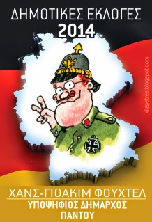 Ελληνίδες, Έλληνες! Η χώρα σας έχει την παγκόσμια πρωτιά να διαθέτει έναν Γερμανό Υπουργό στην υπηρεσία της Τοπικής Αυτοδιοίκησης. Στηρίξτε-ψηφίστε τον κύριο Φούχτελ, μέσω των αντιπροσώπων του σε όλη την Ελλάδα!