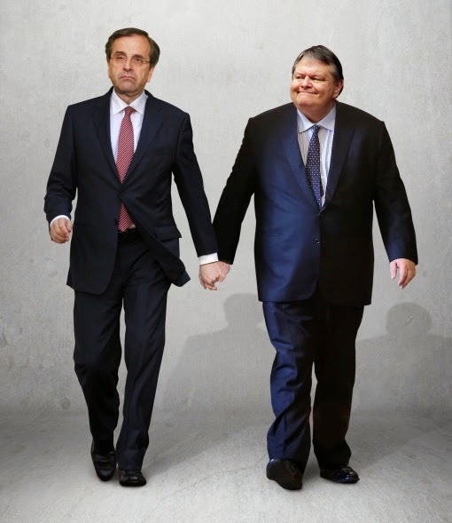 Ίδια κι όμοια η απελπισμένησυνεύρεση του αίσχους των δύο υποχειρίων της τρόϊκας και των τραπεζών, οδηγεί μεθαύριο και τους δύο στον γκρεμό!