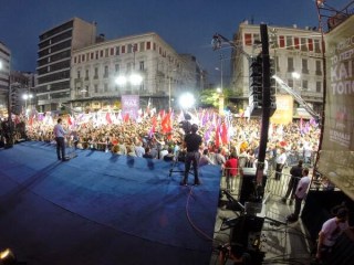 Ήταν η μεγαλύτερη προεκλογική συγκέντρωση του ΣΥΡΙΖΑ, διπλάσια σε μέγεθος από τη συγκέντρωση, πάλι στην Ομόνοια, για τις εθνικές εκλογές του 2012: Ο συγκεντρωμένος κόσμος…
