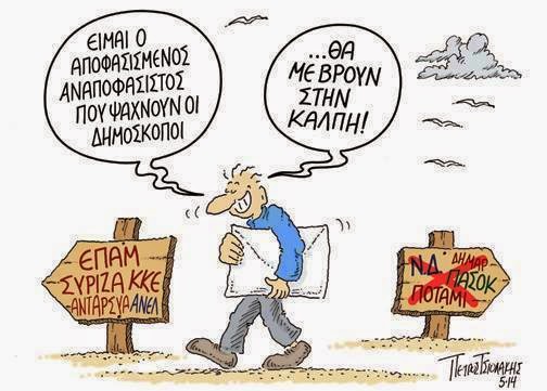 Αυτό το άρθρο δημοσιεύτηκε στο Ανάμια, Σκίτσα, Παραλαλίδις, Γελοιογραφίες, Σάτιρα, Πολιτική γελοιογραφία & σάτιρα, Ευρωεκλογές 2014. Αποθήκευσε τον μόνιμο σύνδεσμο.