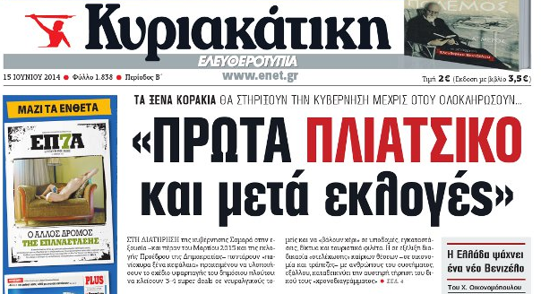 Επιδίωξή τους η στήριξή της (υπό τον Αντ. Σαμαρά) προκειμένου να συνεχιστεί η εκχώρηση «δημόσιου πλούτου», να συμφωνηθούν 3-4 big deals σε κλάδους-κλειδιά, να «αξιοποιηθούν» νευραλγικές υποδομές.