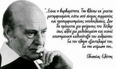 Και είναι αδιανόητο στην σημερινή Ελλάδα των τόσων »καταξιωμένων πνευματικών ανθρώπων» της τέχνης και των γραμμάτων,