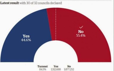 Τελείωσε τ’ όνειρο της Ανεξαρτησίας – Η Σκωτία παραμένει στο Ηνωμένο Βασίλειο – το 55% ψήφισε «ΟΧΙ»