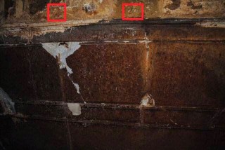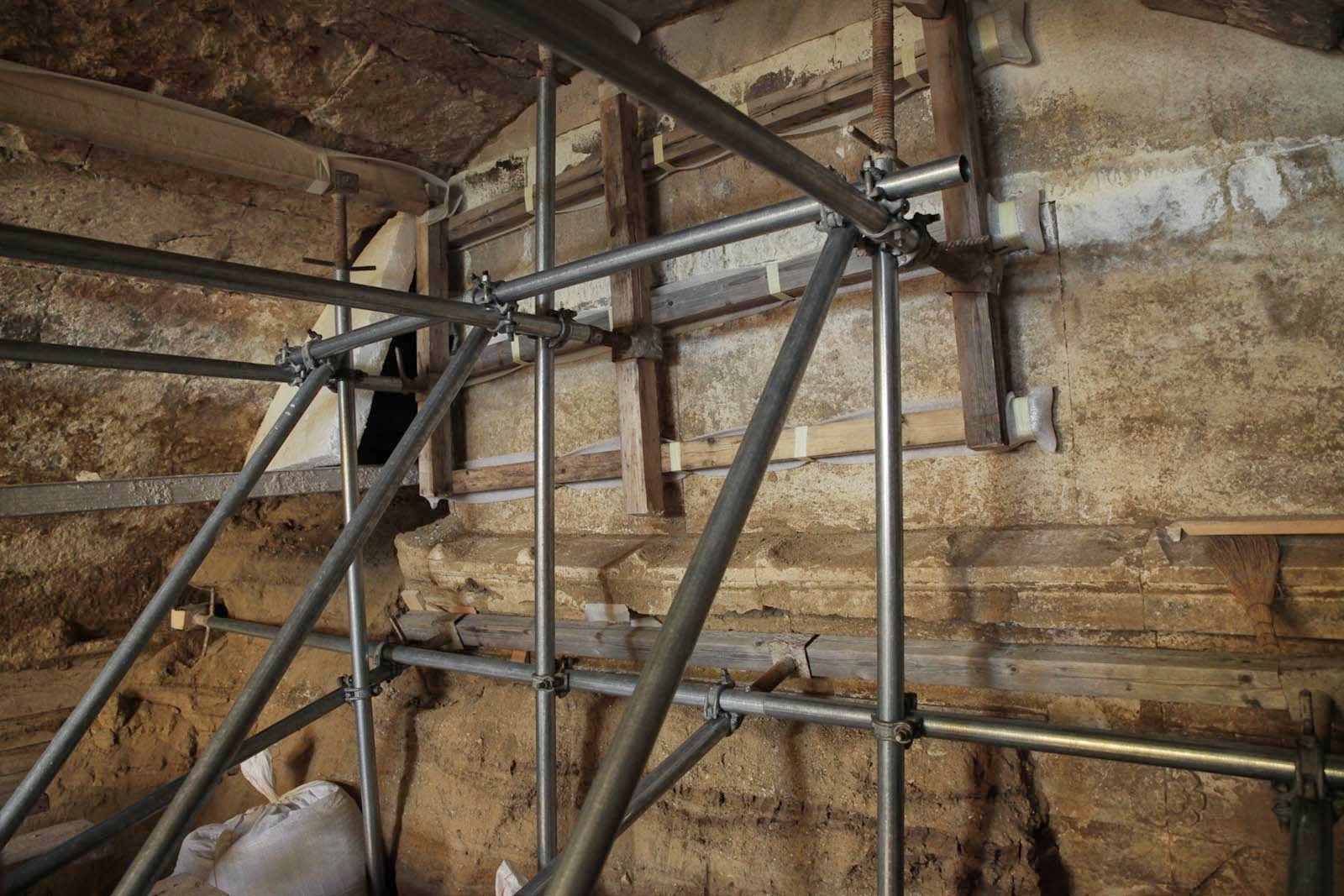 Κατά σύμπτωση (!) το σημείο αυτό του επιστηλίου εκαλύπτετο από μαύρη σακούλα, που από ότι φαίνεται στην φωτογραφία (πίσω από τα πόδια του εργάτη ) είχε ξεκολήσει στο επίμαχο σημείο, για αυτό και τελικά κατεγράφη το σημείο αυτό :