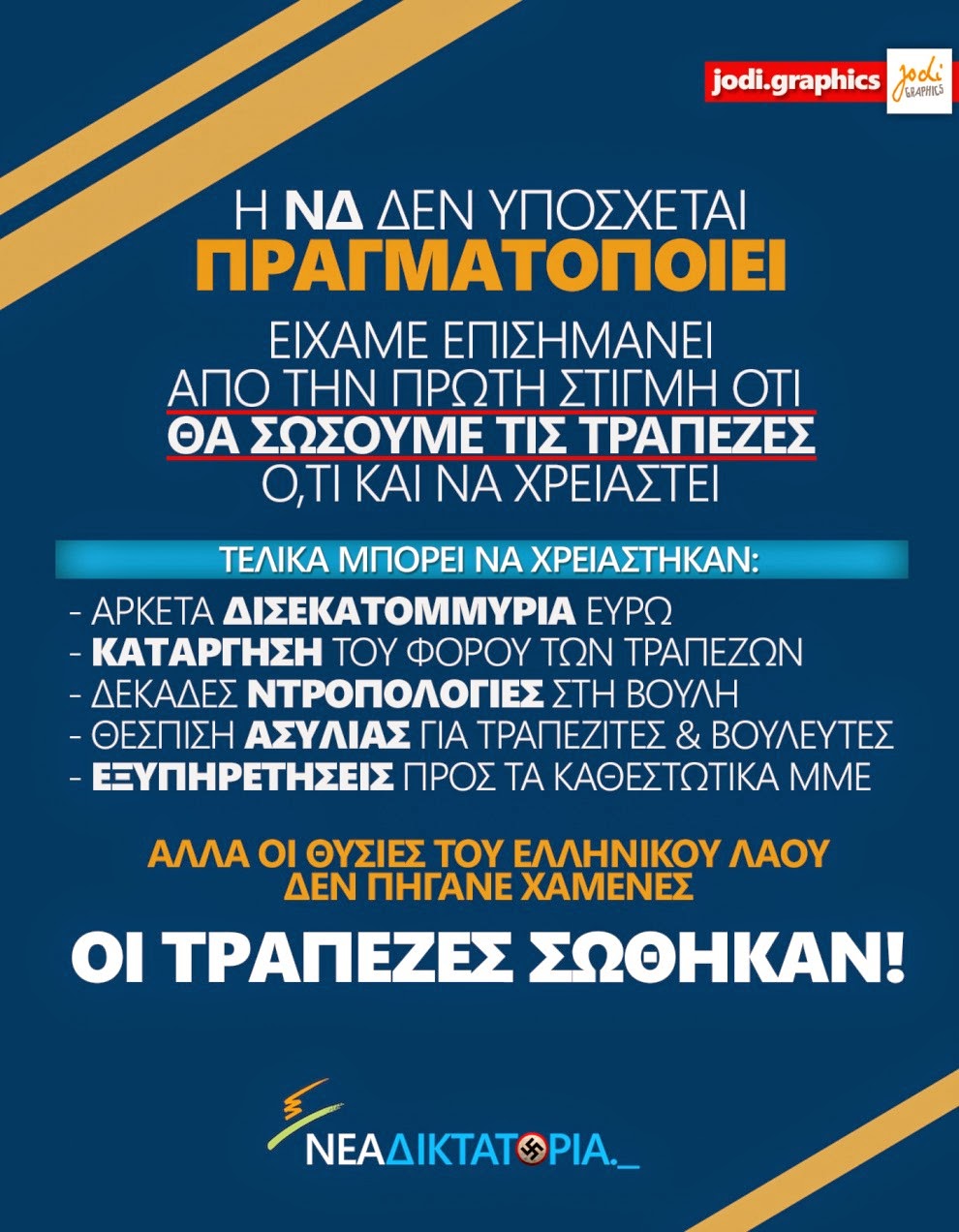 Θα άρεις το βάρος των 110 (και πάνω) δις ευρώ για την ανακεφαλαιοποίηση των τραπεζών που φόρτωσες σαν χρέος στον Ελληνικό λαό; Και πού πήγαν όλα αυτά τα δις και τώρα θυμήθηκαν τάχα οι ευνοημένοι σου τραπεζίτες ότι έχουν »πρόβλημα ρευστότητας»;