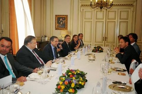 (Αυτό, δίπλα, στην φωτογραφία, παλιά το λέγανε »διαπραγμάτευση»! Αξίζει να παρατηρήσουμε τομαραμένο ύφος τουψευτομαχαλόμαγκαπρώην »πρωθυπουργού», και την ερωτική ματιά της Αυτού Χυδαιότητας, προς τον λελέ με τις μπούκλες)