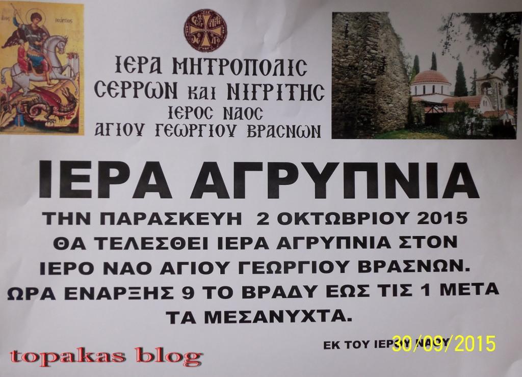 Εις ανάμνησιν της διάσωσης του χωριού μας από την φοβερή πυρκαγιά του Οκτωβρίου του 1991 θα τελεσθεί ιερά Αγρυπνία. Παρασκευή 2 Οκτωβρίου με ώρα έναρξης 21:00