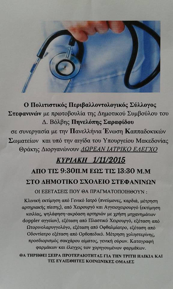 Στα Στεφανινά και με πρωτοβουλία της ιατρού Πηνελόπης Σαραφίδου