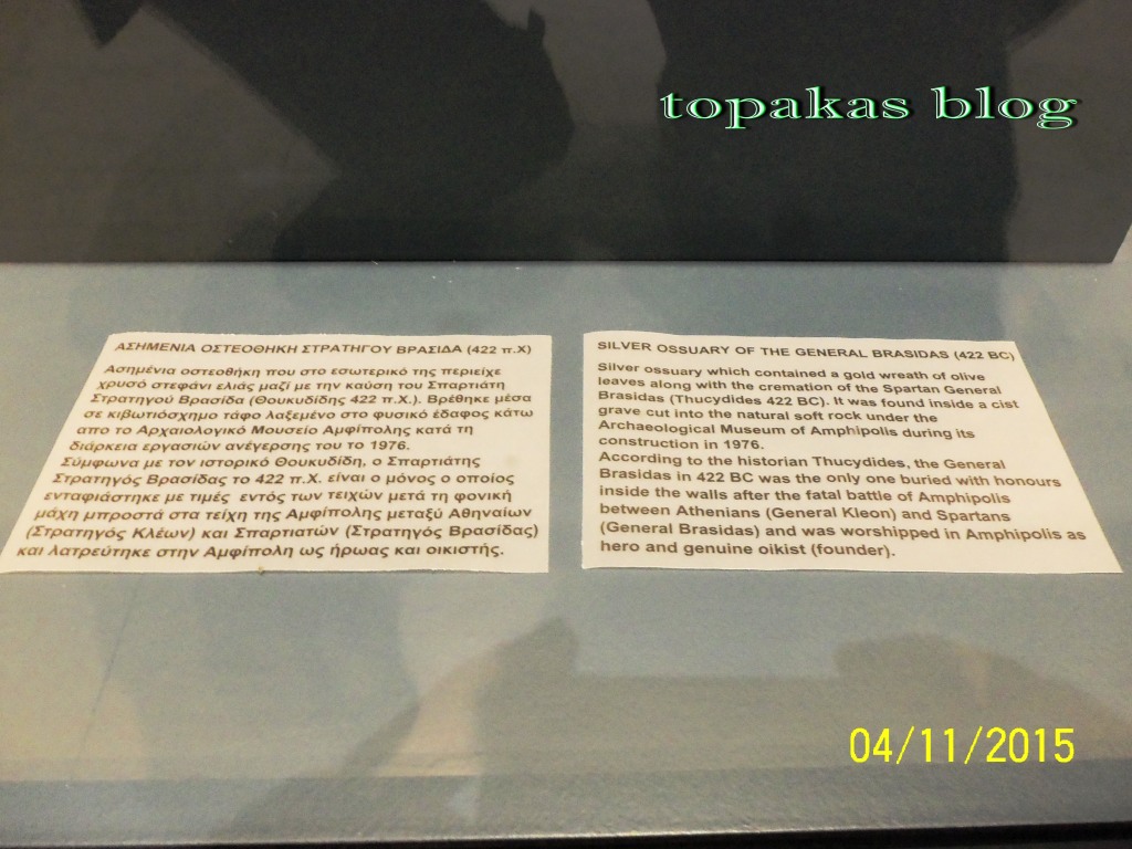 Μουσείο Αμφίπολης, η οστεοθήκη και ο τάφος του στρατηγού Βρασίδα, λόφος Καστά, Λέων Αμφίπολης. Περισσότερες φωτογραφίες και ένα σύντομο βίντεο