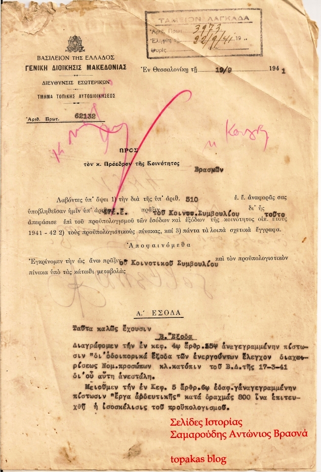 Έγκριση προϋπολογιστικών πινάκων (19/09/1941)