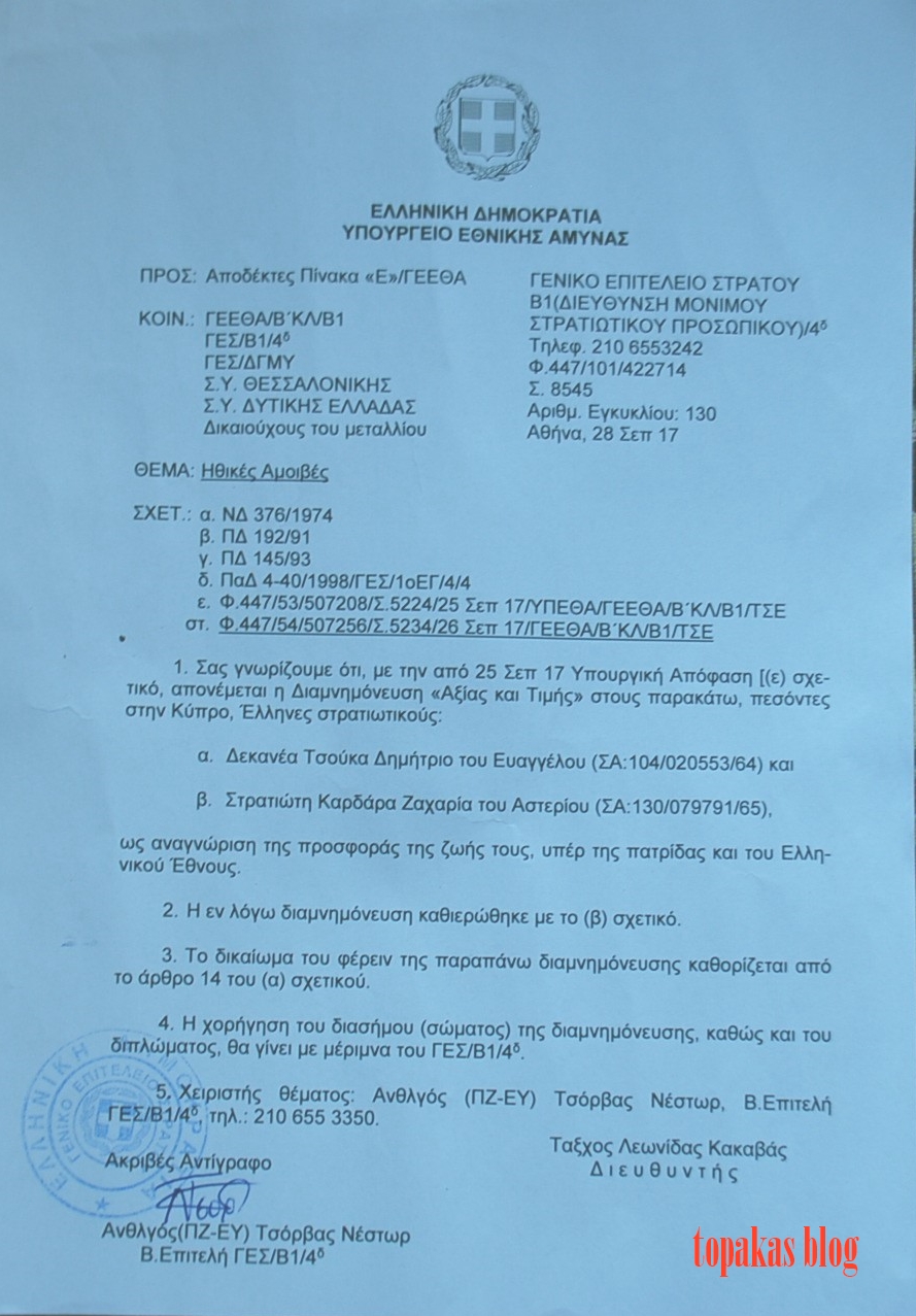 Το Μετάλλιο Αξίας και Τιμής